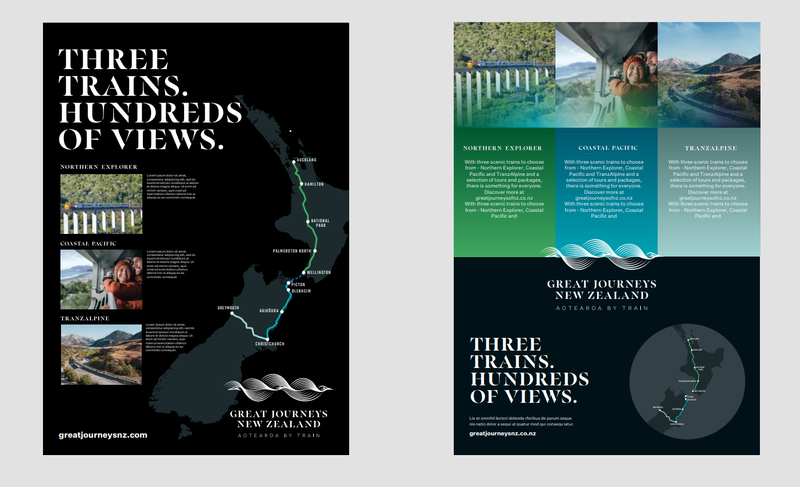 This section contains online branding, copywriting and sub branding used for marketing of Great Journeys NZ and freelance work. I take inspiration from nature and my own Māori heritage.